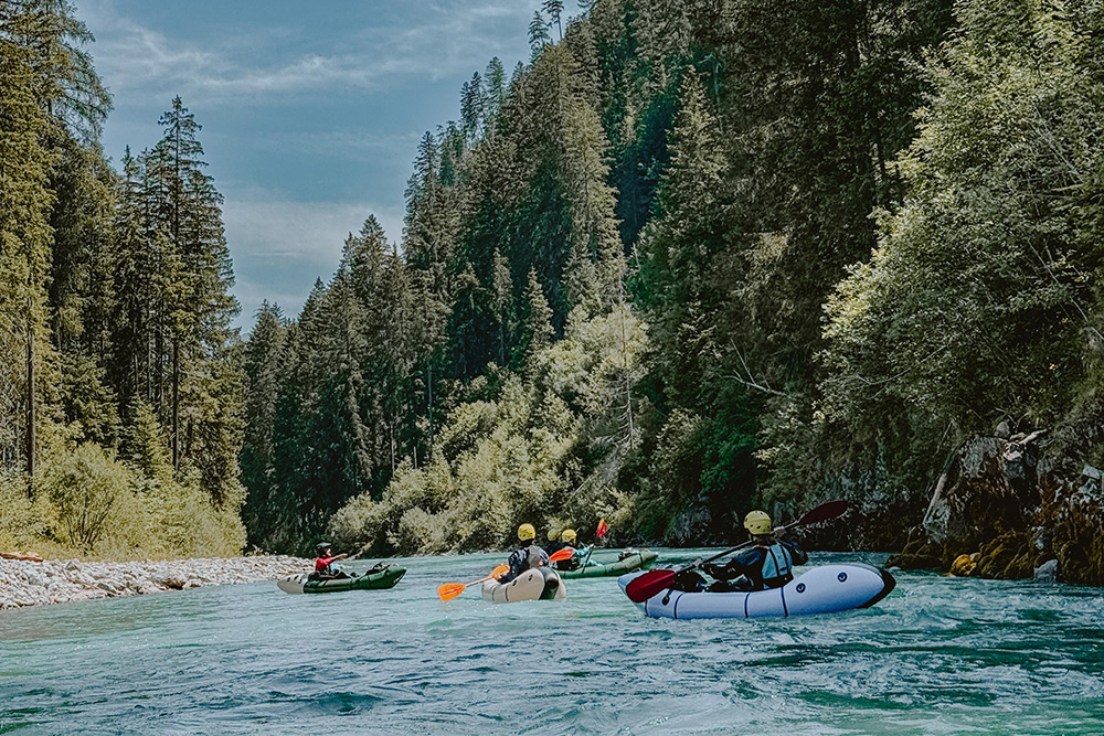 Il packrafting non può essere praticato senza le giuste attrezzature. Ci assicuriamo che con la giusta attrezzatura per il packraft in acque bianche tu sia al sicuro durante la tua avventura.