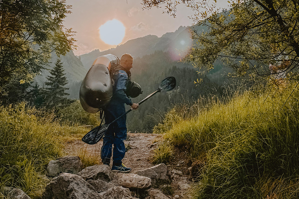 Il packrafting combina l’escursionismo e il rafting in una zattera gonfiabile compatta e leggera. Puoi portare facilmente la zattera nello zaino durante le escursioni e gonfiarla con una speciale sacca d’aria una volta che vuoi proseguire su un fiume o un lago.